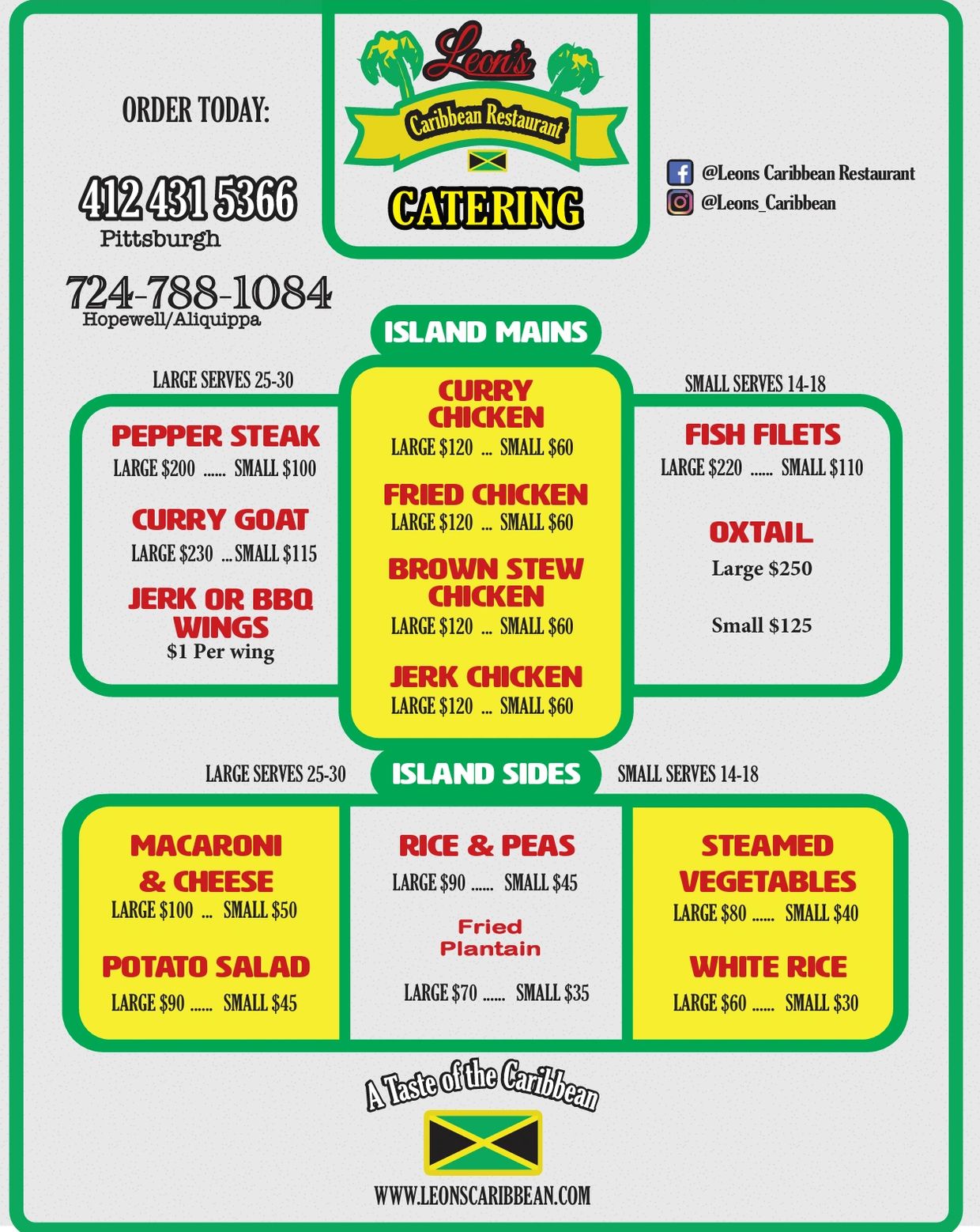 Family owned and operated since 2014. At Leon’s, we take pride in our recipes and quality of dishes. Simple menu with all the traditional dishes! Leon Sr. has been a chef for 50+ years mastering the taste everyone has grown to love and can only get at Leon’s.